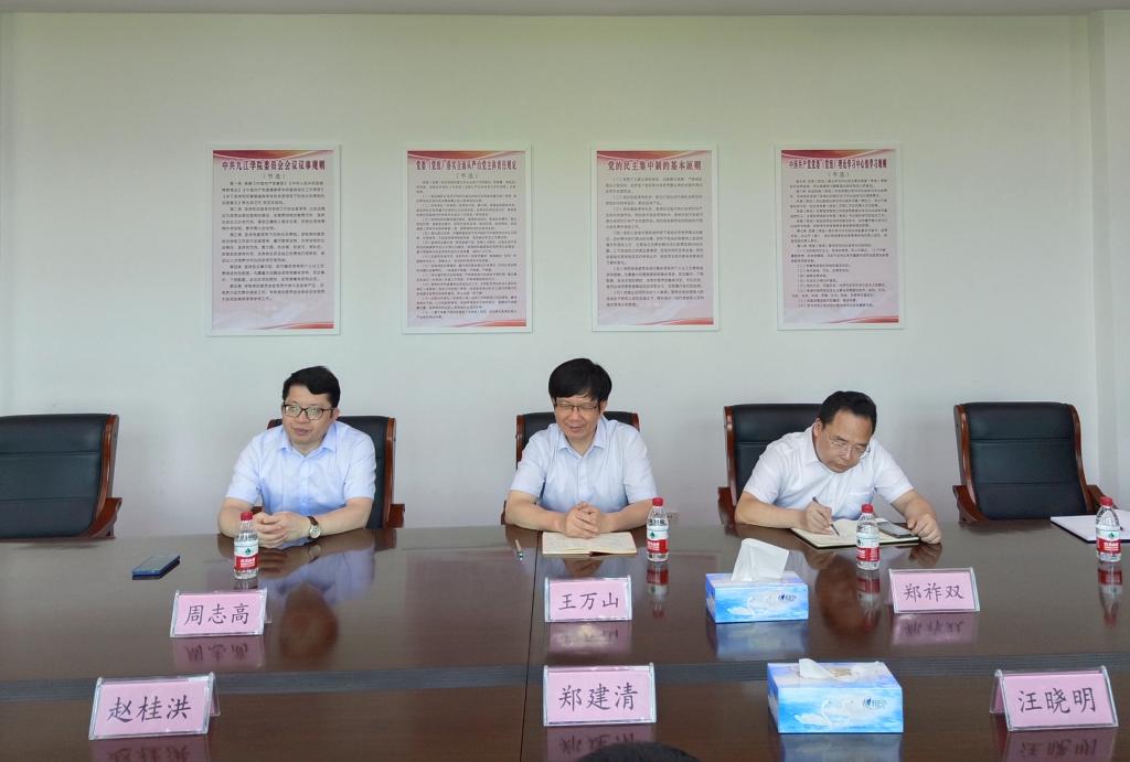 6月26日下午,江铜集团城门山铜矿党委书记郑建清、矿长赵桂洪一行来taptap点点调研,副校长王万山及taptap点点体育、外国语学院负责同志参加调研会。